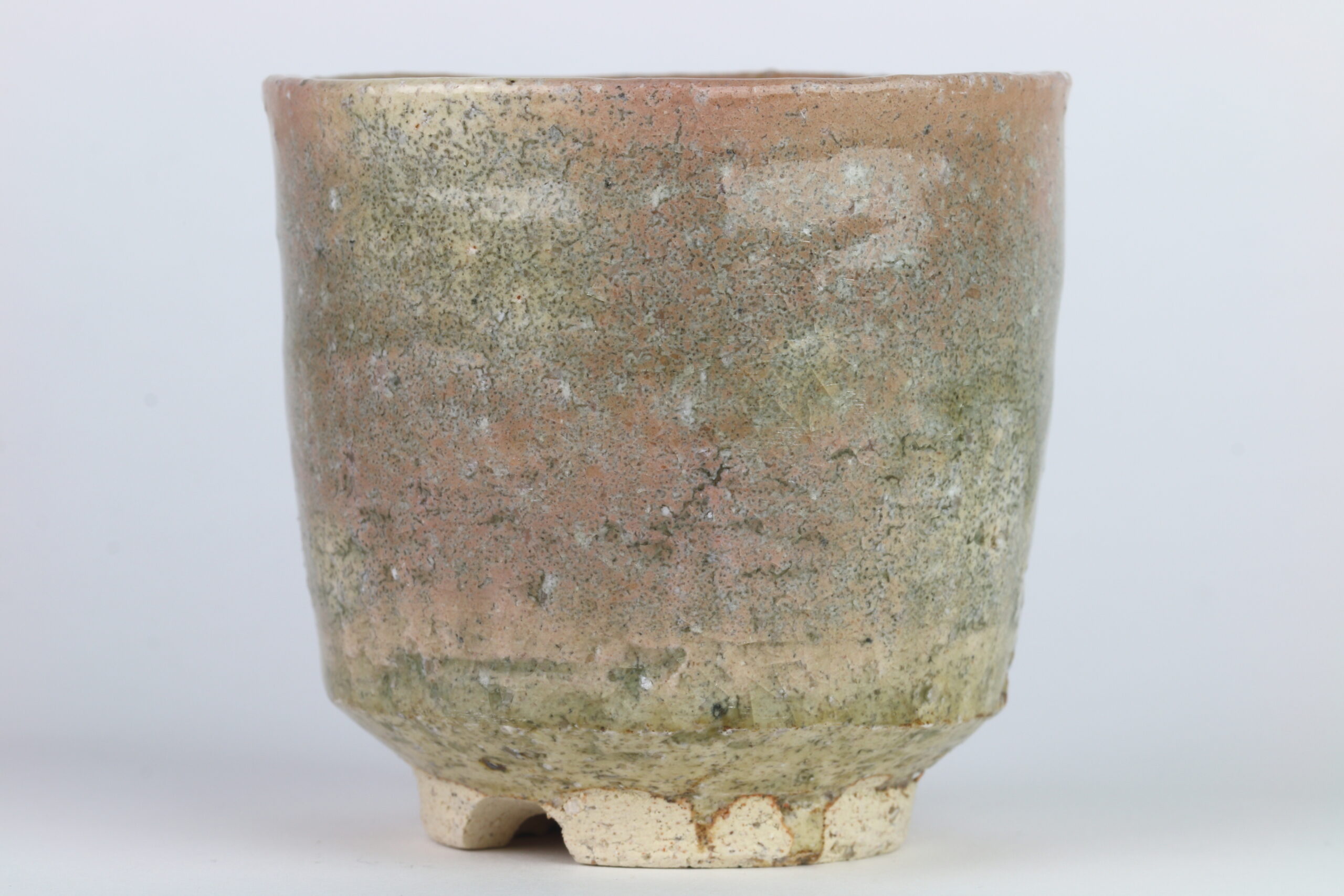 Tanka-Keramik. Außen rau, innen mit einer Asche-Glasur versehen.