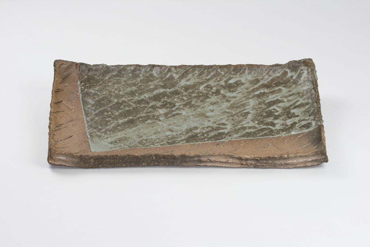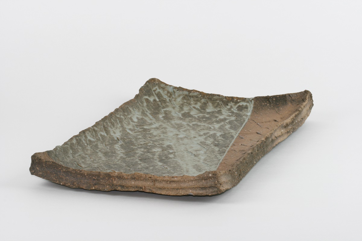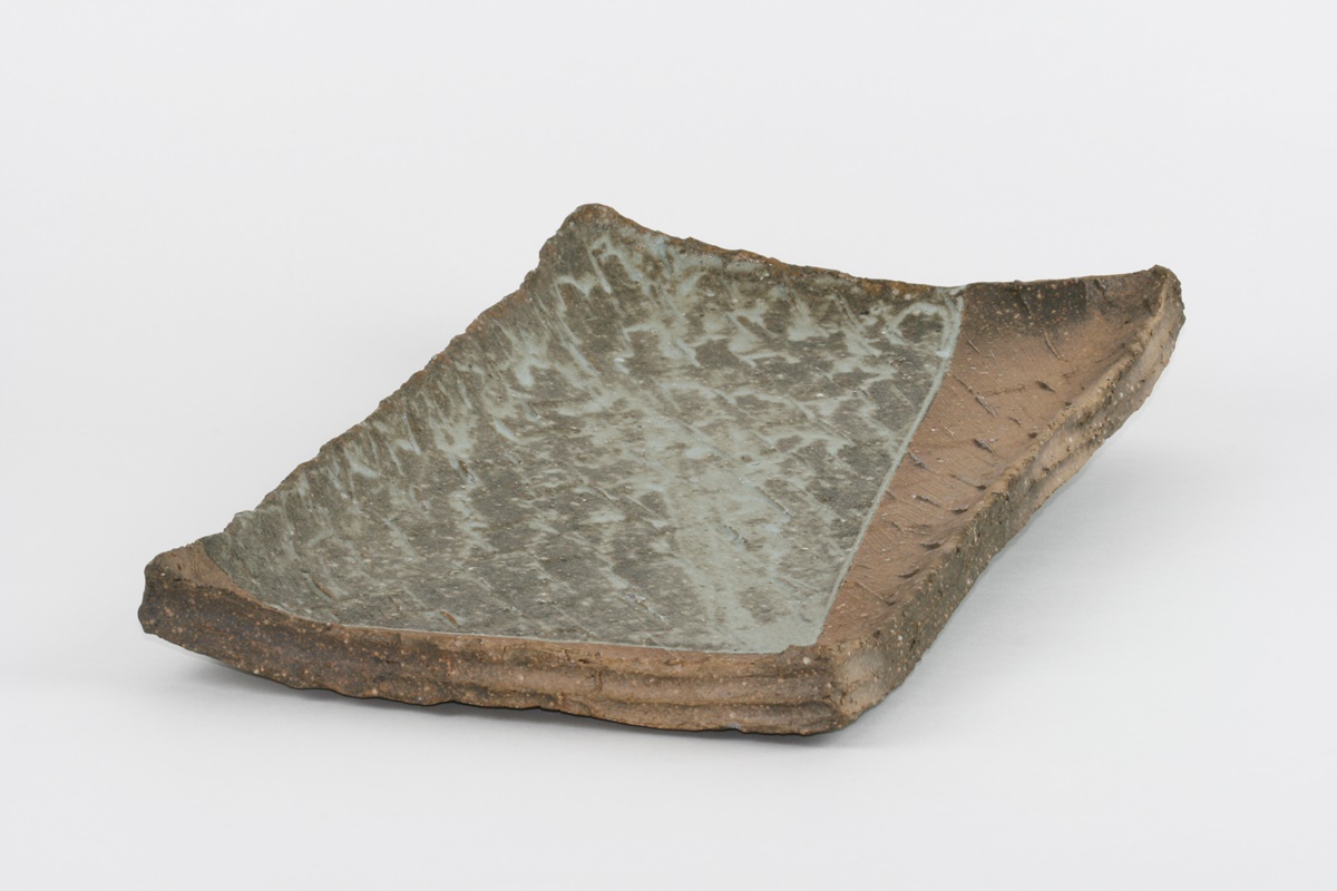 Schöne Mino Yaki-Keramik mit zweifarbiger Glasur und einem welligen Rand.