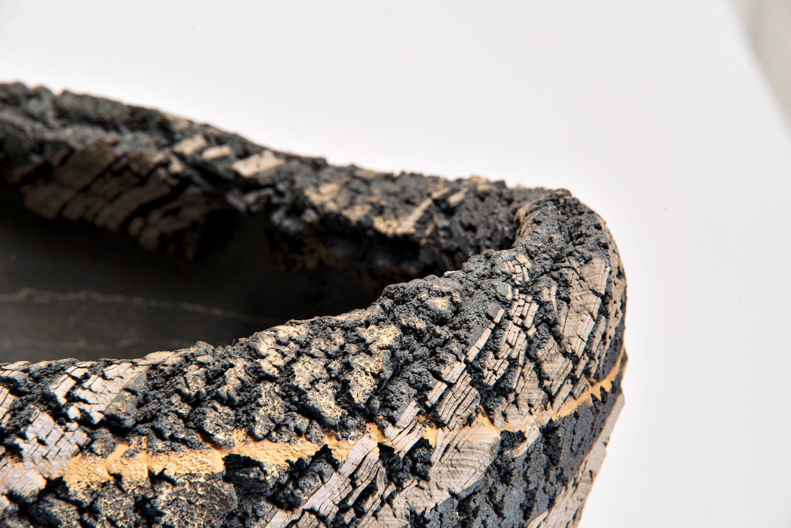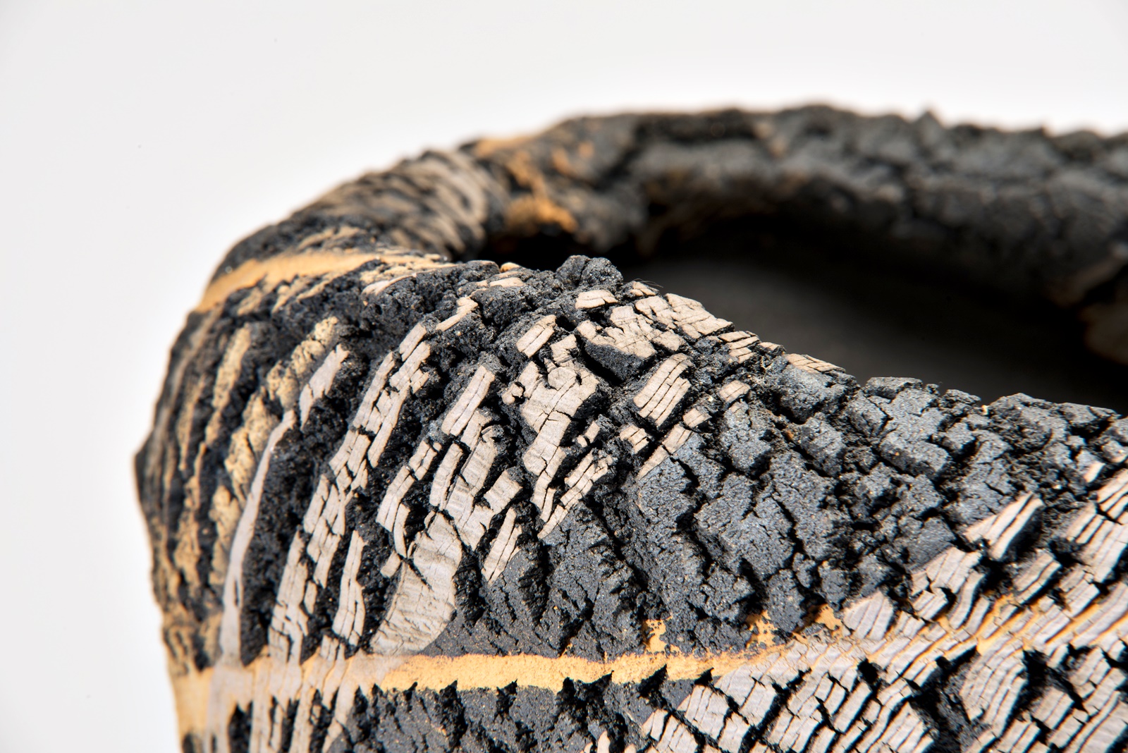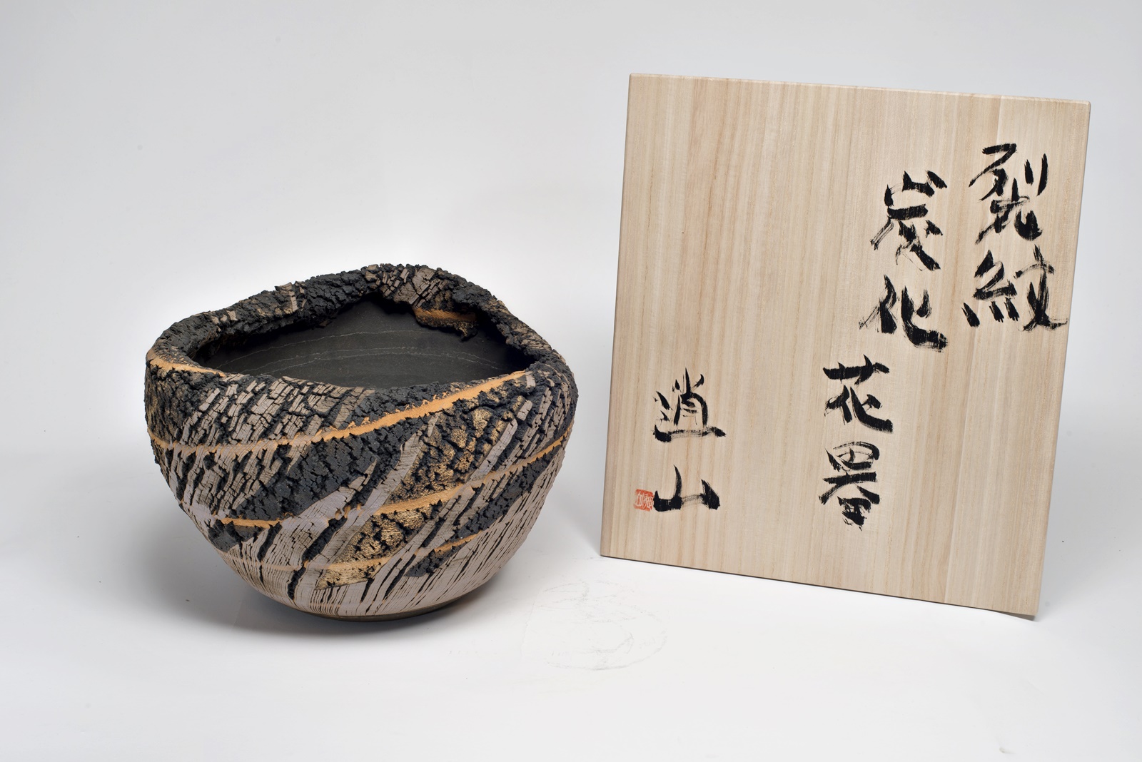 „Bei der speziellen Art zu brennen handelt es sich um eine Art, die „Verkohlung“ genannt wird. Dabei wird ein Produkt erst mit dem normalen Verfahren gebrannt (1200°C), dann sperrt man die Luftzufuhr zur Brennkammer des Ofens völlig ab, wirft so viel Brennholz wie möglich ein und lässt den Ofen schmoren. Bei dieser Art zu brennen wird insbesondere die natürliche Glasur in einen starken Reduktionszustand überführt. Als Auswirkung des plötzlichen Temperaturabfalls entstehen an der Oberfläche mikrofeine Luftbläschen; eine mikrofeine Kohlenstoffhaut bedeckt die Oberfläche des Produkts (bei Bizen-Yaki wird sie Homura = ungleichmäßige Flammenspur genannt) und erzeugt einen besonderen Eindruck für das Auge und den Tastsinn. Dieser Effekt ist es, den man zu erreichen versucht. Aber diese Art zu brennen belastet den Ofen sehr. Ein Ofen von mir, den ich 20 Jahre verwendet hatte, wurde stark beschädigt, weshalb ich vor 5 Jahren aufgehört habe, mit dieser Methode zu arbeiten.
