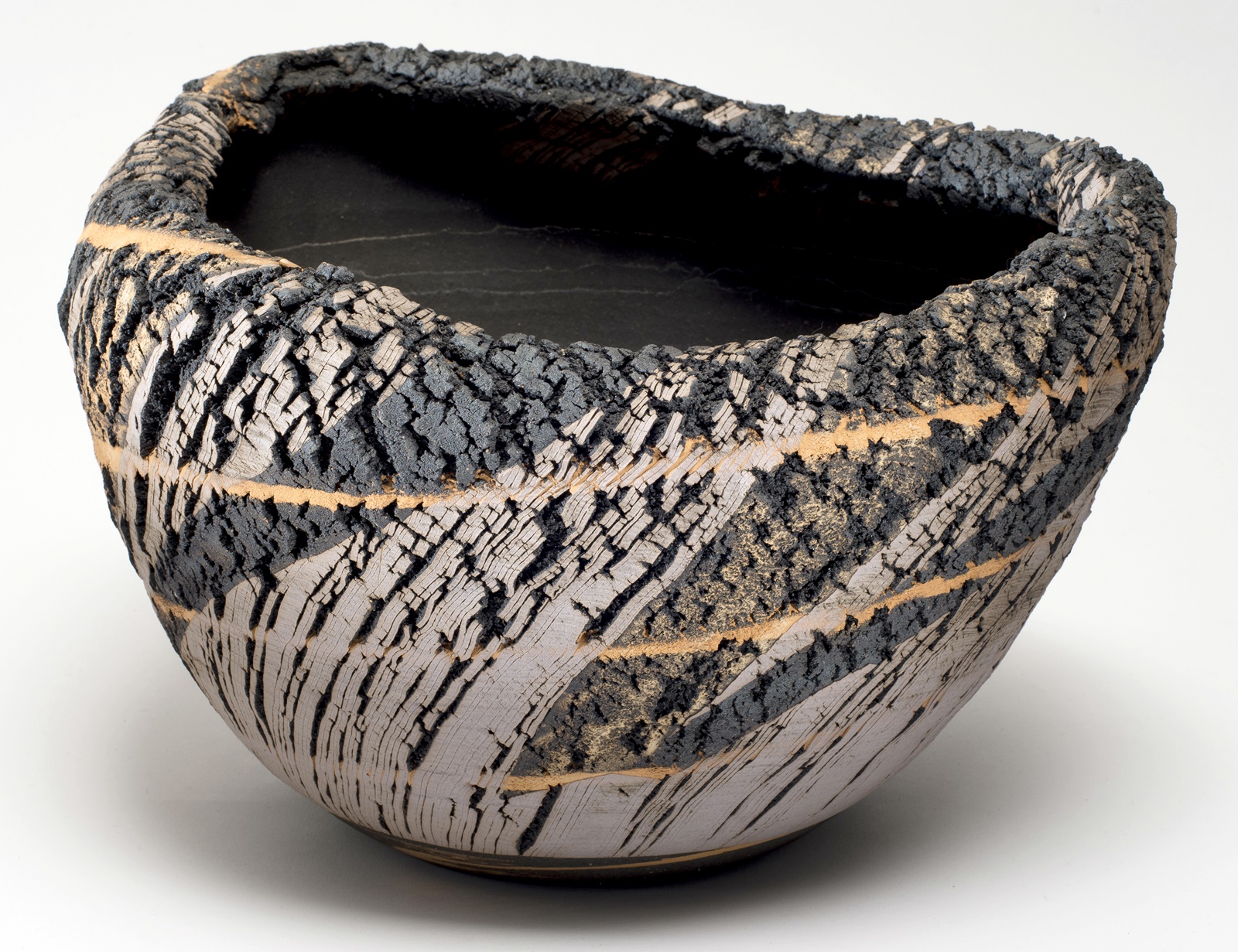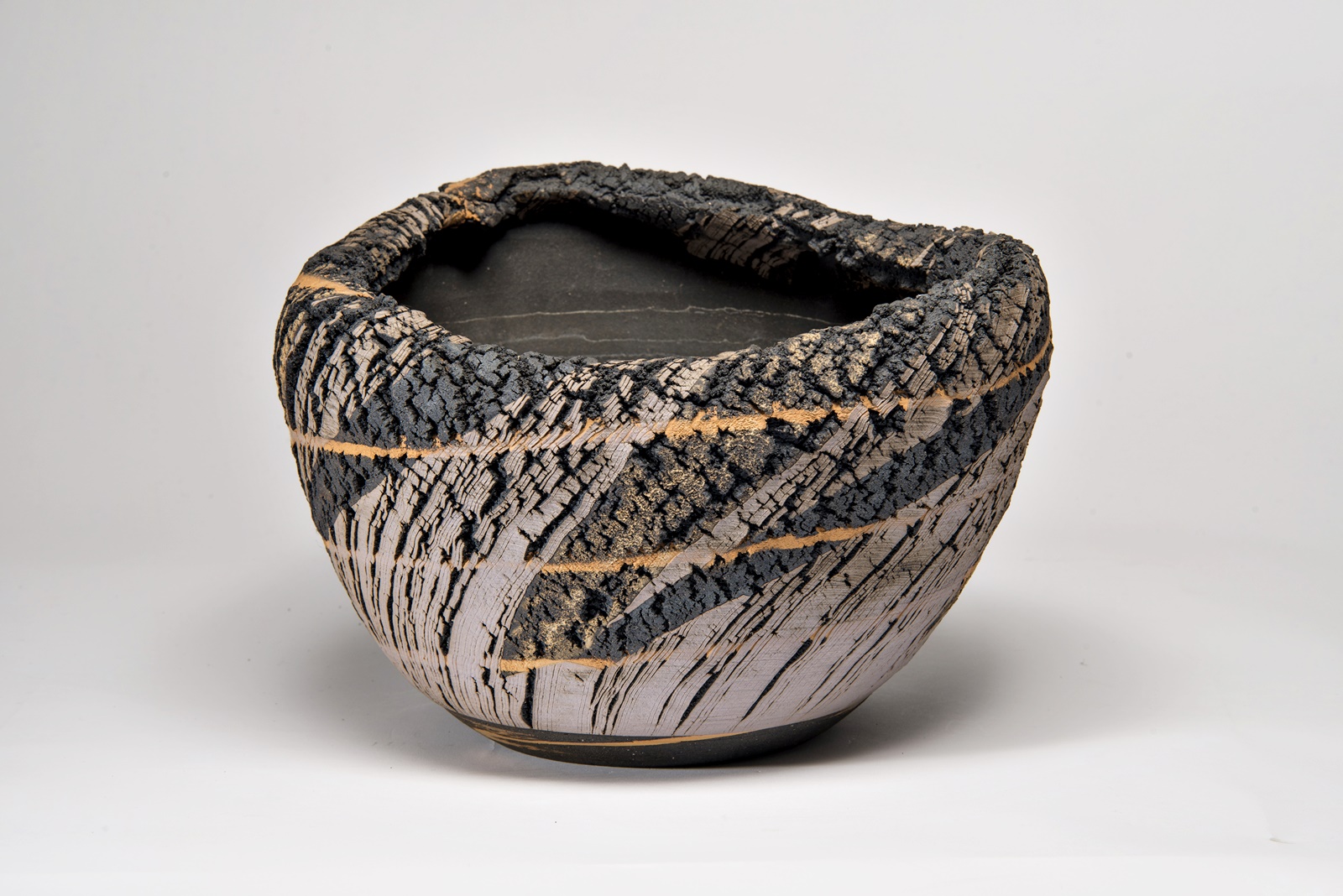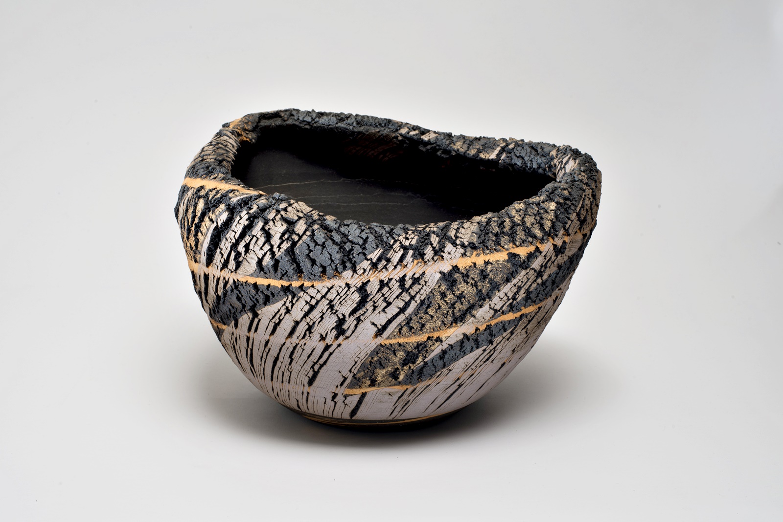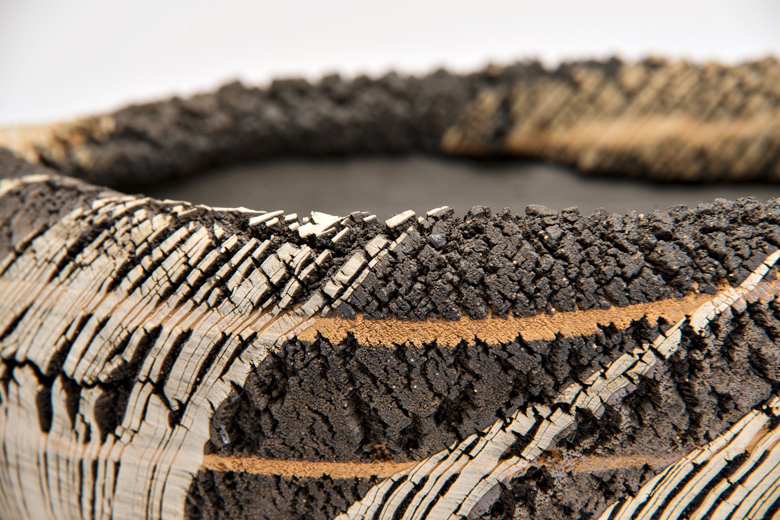 „Bei der speziellen Art zu brennen handelt es sich um eine Art, die „Verkohlung“ genannt wird. Dabei wird ein Produkt erst mit dem normalen Verfahren gebrannt (1200°C), dann sperrt man die Luftzufuhr zur Brennkammer des Ofens völlig ab, wirft so viel Brennholz wie möglich ein und lässt den Ofen schmoren. Bei dieser Art zu brennen wird insbesondere die natürliche Glasur in einen starken Reduktionszustand überführt. Als Auswirkung des plötzlichen Temperaturabfalls entstehen an der Oberfläche mikrofeine Luftbläschen; eine mikrofeine Kohlenstoffhaut bedeckt die Oberfläche des Produkts (bei Bizen-Yaki wird sie Homura = ungleichmäßige Flammenspur genannt) und erzeugt einen besonderen Eindruck für das Auge und den Tastsinn. Dieser Effekt ist es, den man zu erreichen versucht. Aber diese Art zu brennen belastet den Ofen sehr. Ein Ofen von mir, den ich 20 Jahre verwendet hatte, wurde stark beschädigt, weshalb ich vor 5 Jahren aufgehört habe, mit dieser Methode zu arbeiten.