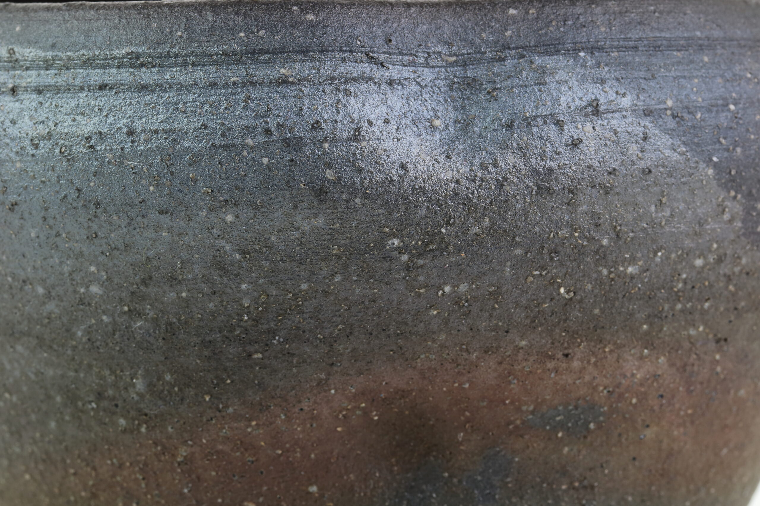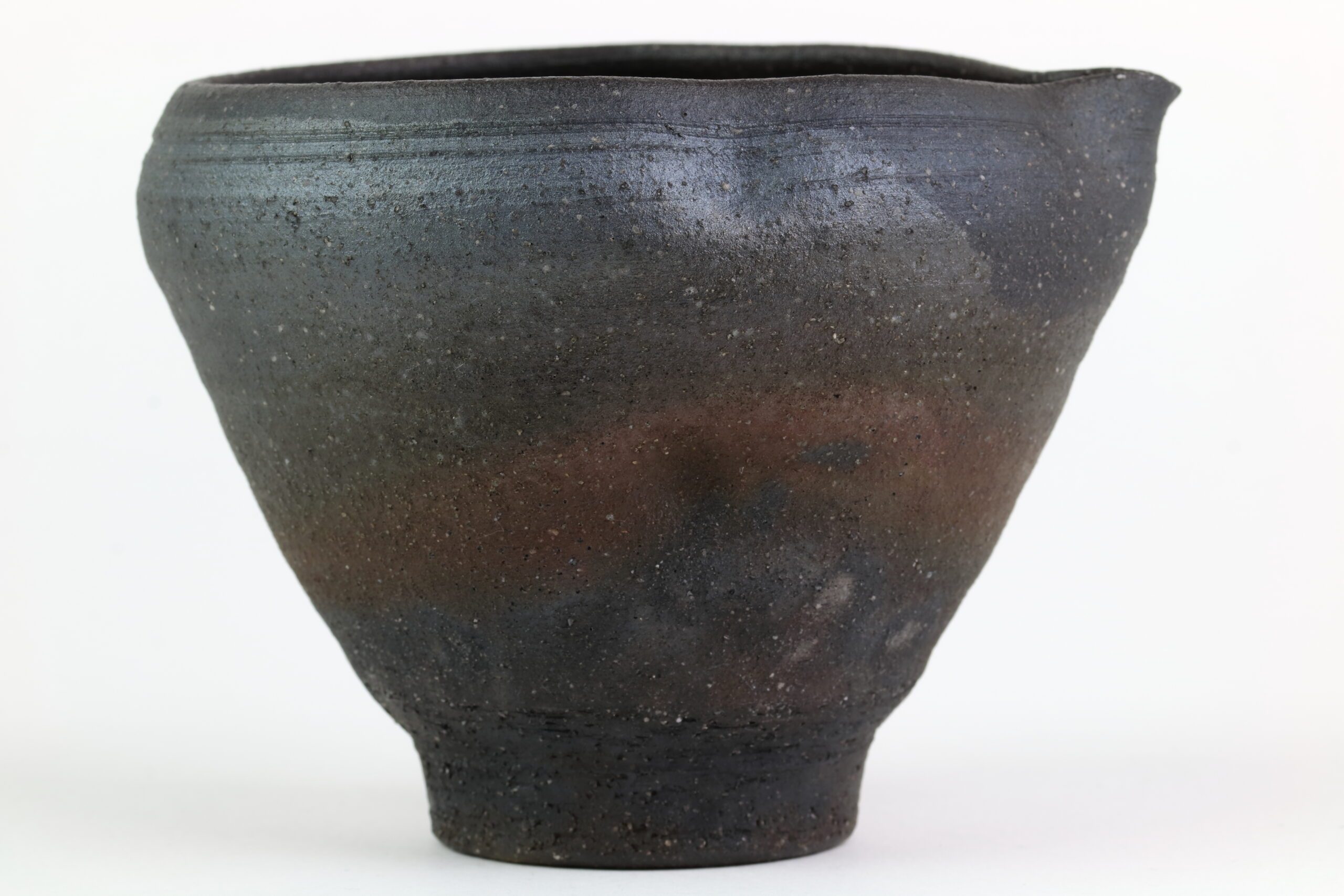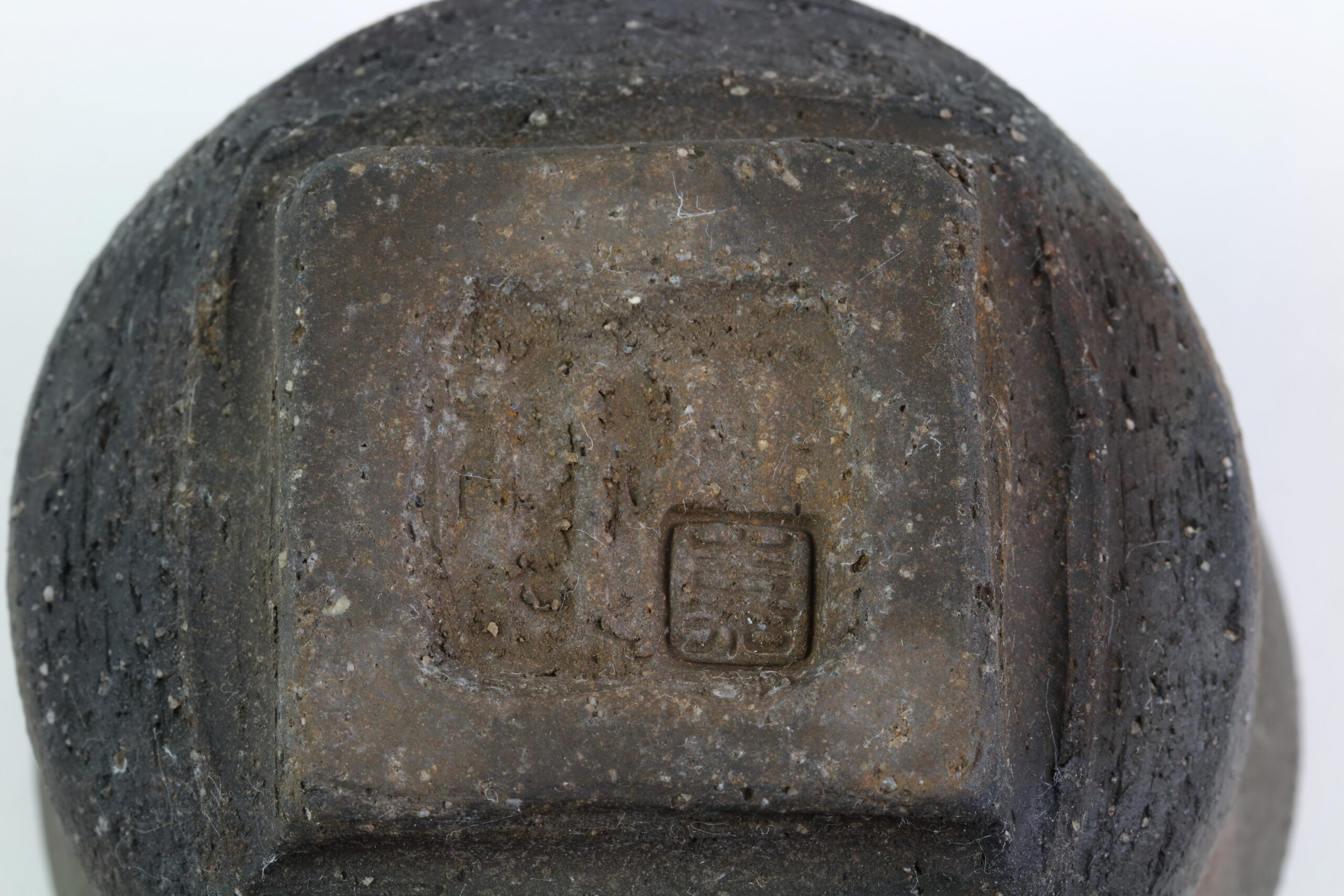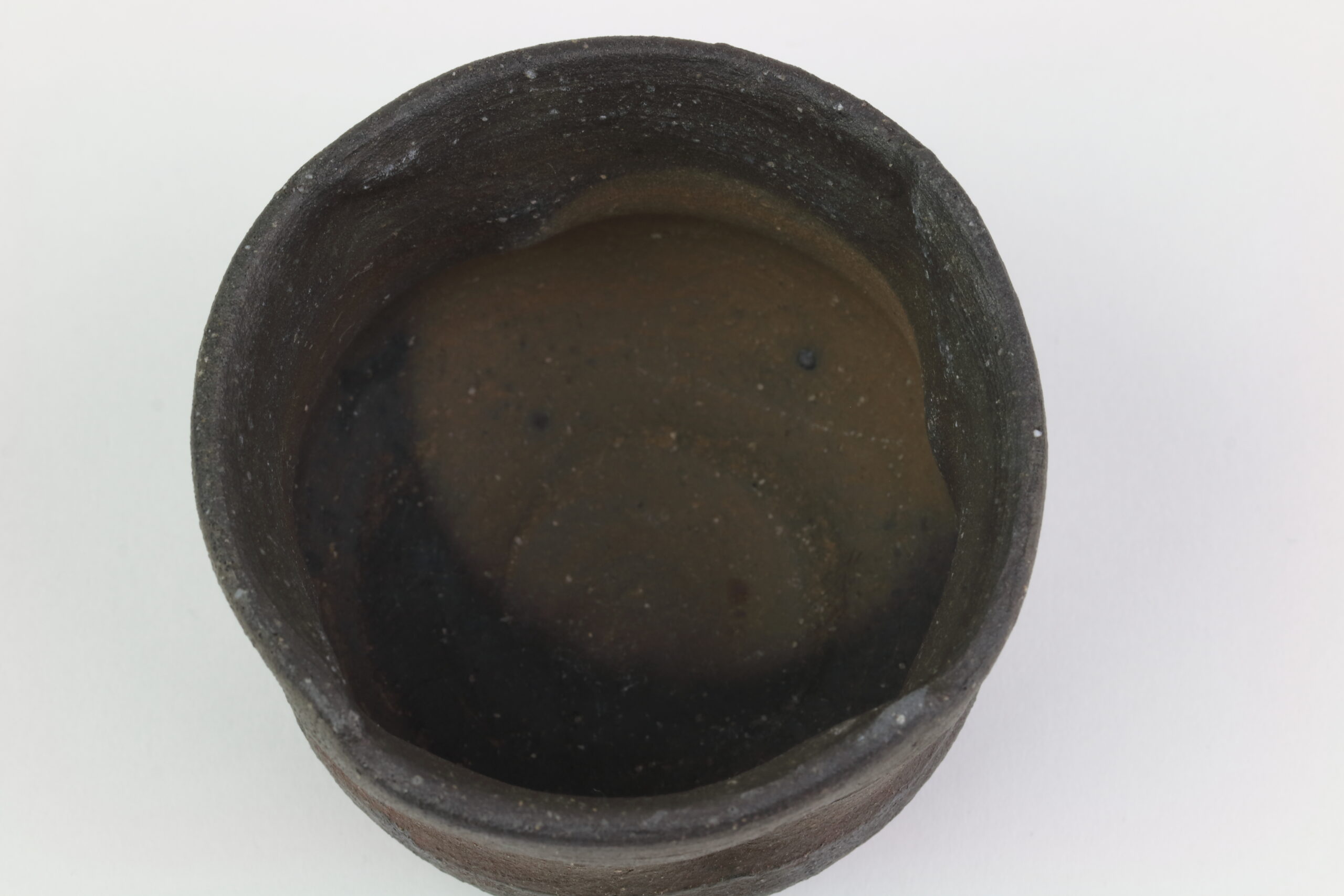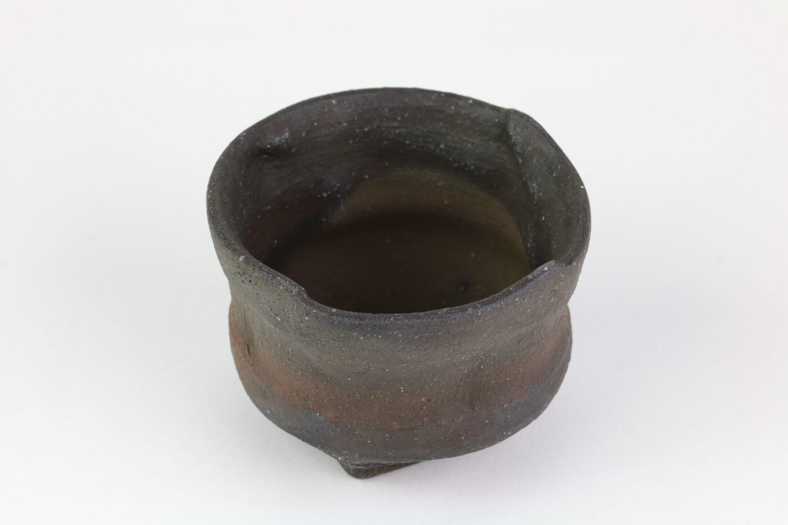 Einzigartiges Sake-Set der Hechimon-Serie. Der Begriff „Hechimon“ steht für handgefertigte Einzelstücke, die die natürlich Schönheit und Unvollkommenheit hervorheben. Der Begriff „Katakuchi“ bezeichnet den einseitigen Ausguss. Bei der Sake-Kanne sind links und rechts deutliche „Einbuchtungen“ oder auch „Dellen“ zu sehen. Je nachdem, ob man die Sake-Kanne in der linken oder rechten Hand hält, entsprechend den Daumen und Zeigefinger platziert, gewährleisten diese Dellen einen sicheren Griff. Diese Keramik zeichnet sich durch eine raue „Rust-Ibushi“-Glasur aus, die ihr eine raue, dunkel oxidierte Oberfläche mit subtilen Erdtönen verleiht.