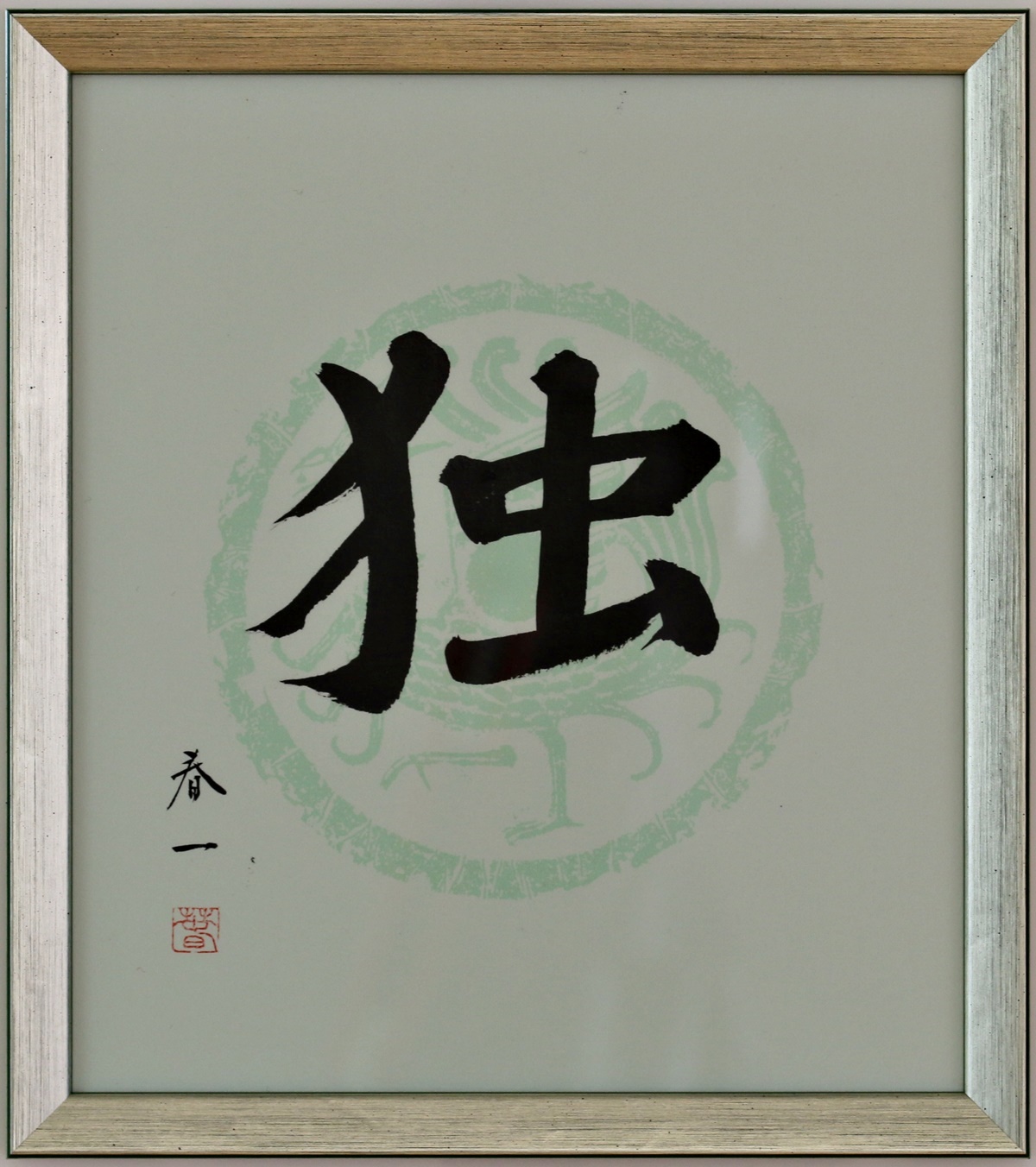 Shodo „Deutschland“. Shodo in den Abmessungen 26 cm x 29 cm, Holzrahmen, hinter Glas. Bitte setzen Sie dieses Shodo keiner direkten Sonneneinstrahlung aus.