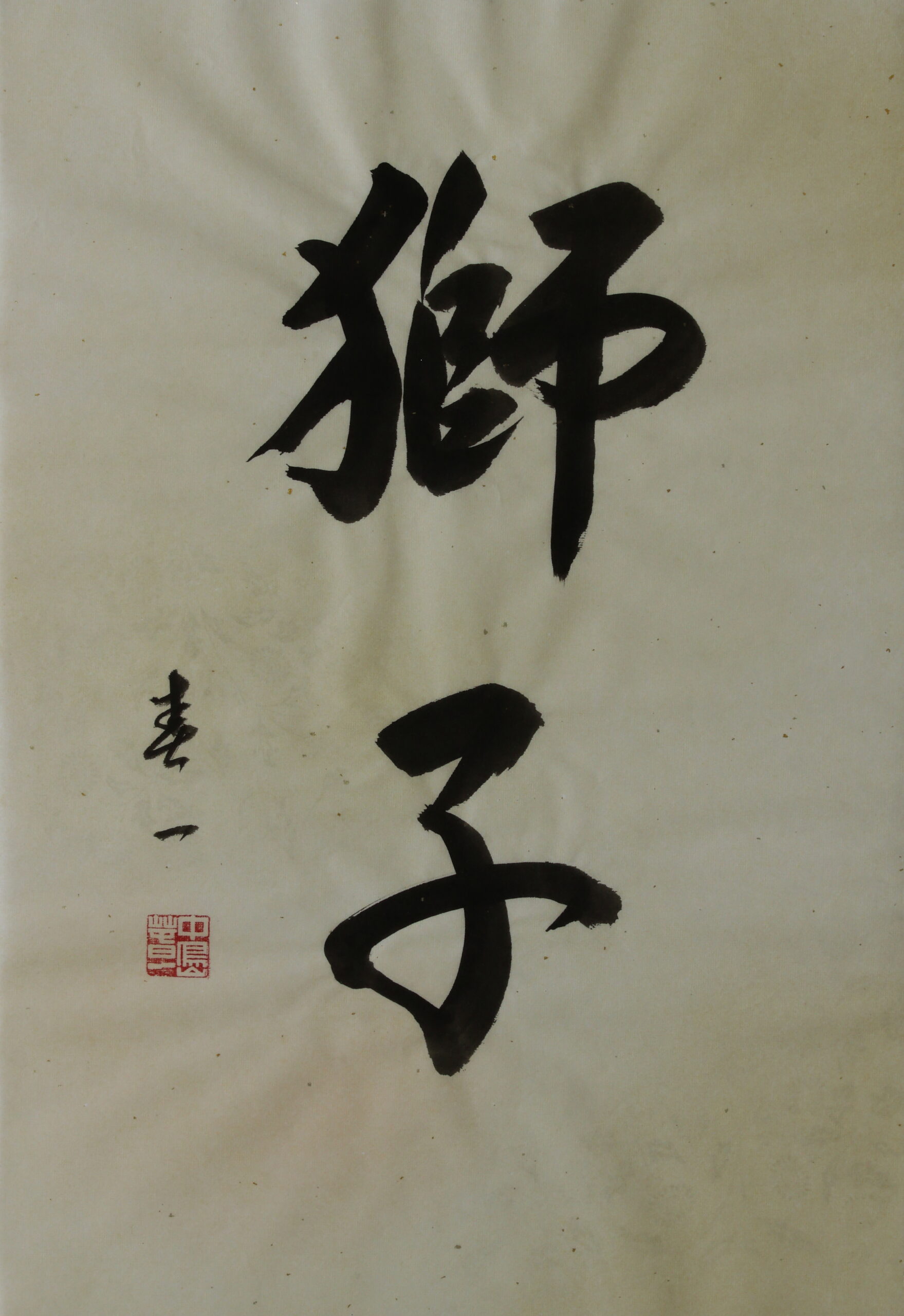 Der Schriftzug bedeutet so viel wie: -Löwe-. Die Kalligraphie wurde mit jap. Kanaryoshi Tsugishi-Papier geschaffen. Bitte setzen dieses Shodo keiner direkten Sonnenstrahlung aus. Auf Wunsch können wir dieses Shodo mit einem passenden Rahmen versehen lassen.