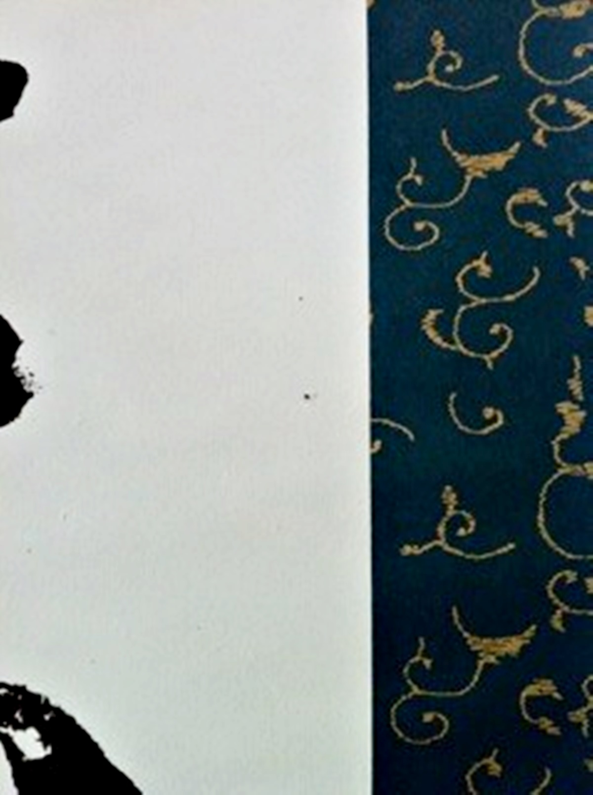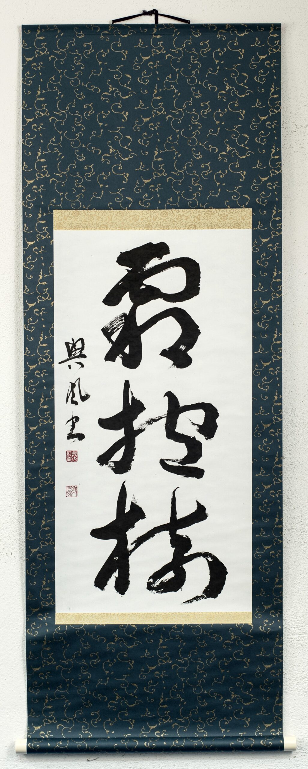 Dieses Shodo ist ebenfalls über 20 Jahre alt und weist dementsprechend leichte Schäden auf. An der rechten Seite ist ein kleines Loch sowie ein kleiner Fleck zu sehen. Ansonsten befindet sich dieses Shodo in einem guten Zustand. Bitte setzen Sie dieses Shodo keiner direkten Sonnenstrahlung aus.