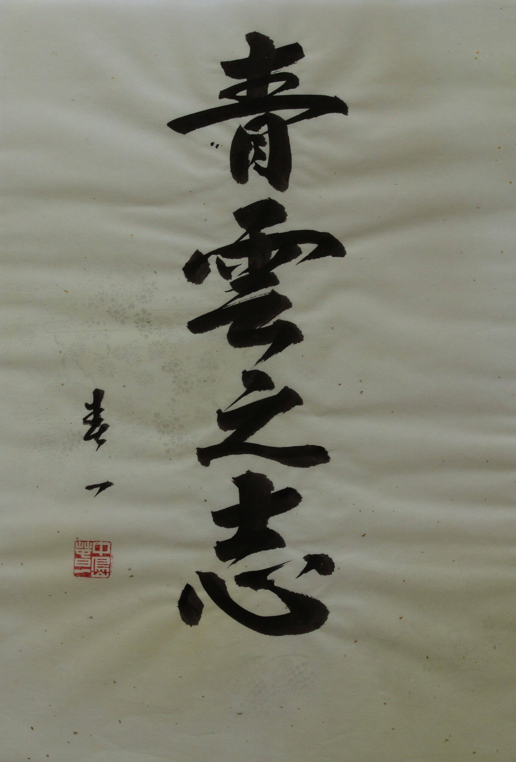 Der Schriftzug bedeutet so iel wie: -Ein Herz, das versucht, die Tugend zu schärfen um eine respektable Person zu werden-. Die Kalligraphie wurde mit jap. Kanaryoshi Tsugishi-Papier geschaffen. Bitte setzen dieses Shodo keiner direkten Sonnenstrahlung aus. Auf Wunsch können wir dieses Shodo mit einem passenden Rahmen versehen lassen.